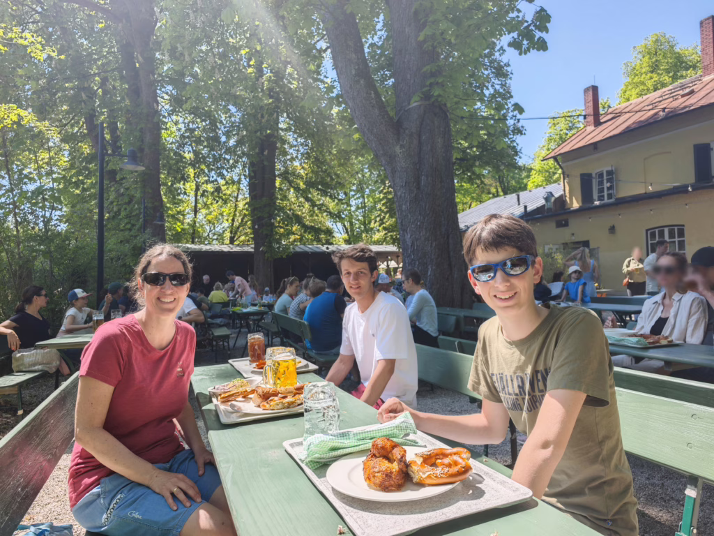 An den Ausgabestationen gibt es natürlich Getränke, und beim Essen kannst du typische bayerische Brotzeiten wie Obatzda oder Wurstsalat aussuchen oder du nimmst Schmankerl wie gebratenes Huhn, Ochsensemmel oder Currywurst. Es gibt aber auch fleischlose und vegane Spezialitäten. Und dann gemütlich unter die Kastanienbäume setzen und genießen. Gleich nebenan wartet auf die Kinder ein richtig großer Spielplatz oder es geht noch zu den Badestellen am Isarufer. Wir haben uns superwohl gefühlt und das Essen hat auch sehr gut geschmeckt. Ein Biergarten ist einfach ein Ort zum Entspannen. Da bleibt man auch gerne mal länger sitzen! (Adresse: Isarauen 8, 81379 München)