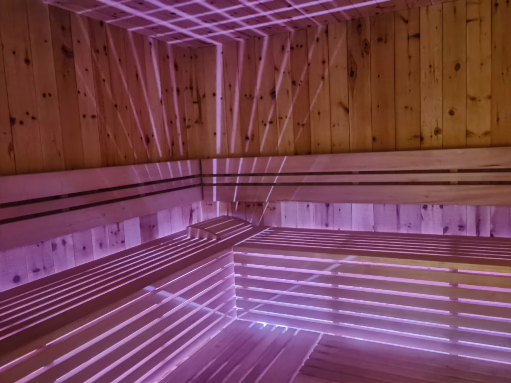 Aber am Trinnerhof wartet noch mehr auf euch. Wenn es mal kalt ist oder euch einfach nach Entspannung zumute ist, dann nutzt ihr den kleinen, aber sehr schönen Saunabereich. Und für Kinder gibt es immer was zu tun. Sie können die Kaninchen füttern, die Hennen besuchen oder sich am Spielplatz austoben. Der Garten ist richtig groß und dort gibt es ein Trampolin, einen Fußballplatz, Schaukeln, eine Rutsche und Bobby-Cars. Und du kannst dir einfach deinen Liegestuhl daneben stellen und das Panorama genießen.